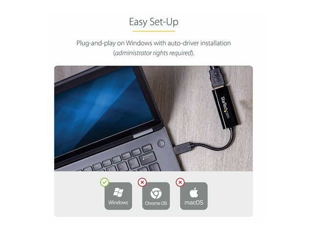 Functioning as an external graphics card, this USB to HDMI adapter provides a convenient way to add multi-monitor capability to a USB 3.0-enabled desktop or laptop computer (optimal performance from USB 3.0, backward compatible with USB 2.0).