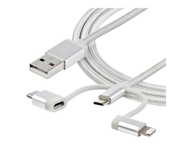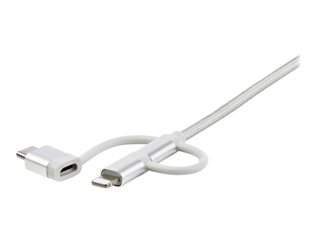 3.3 ft / 1m - Lightning / USB-C / Micro-USB - Braided - MFi Certified - USB 2.0 - 3 in 1 Charging (LTCUB1MGR) - USB-kabel - USB (hann) til Micro-USB type B, Lightning, 24 pin USB-C (hann) - 1 m - sølv
