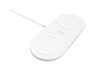 Prevent a bottleneck at your charging pad by doubling down. Take advantage of all the benefits of wireless charging technology, plus the convenience of charging two devices simultaneously. The non-slip grip design keeps your devices securely in place to ensure they keep charging, and LED lights indicate when they're charging correctly.