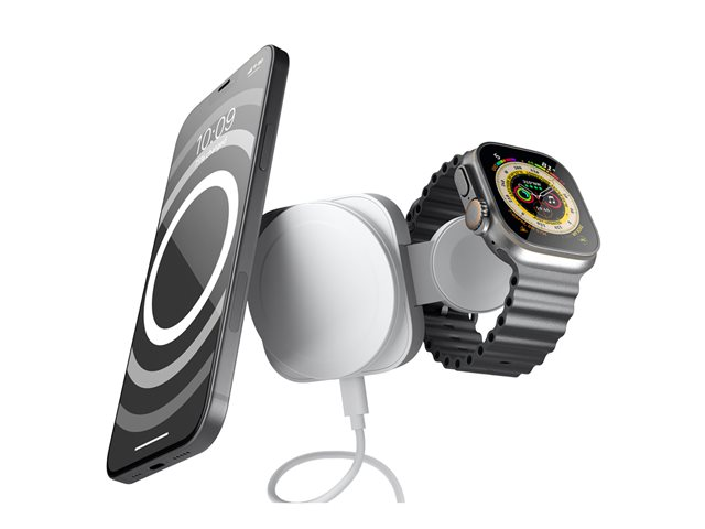 ZENS 2-i-1 MagSafe + Watch trådløs ladeplate er en allsidig løsning for lading av enhetene dine. Den har plass til både mobiltelefoner og smartklokker, og har en utgangseffekt på 20 W for effektiv lading. Med et innebygd støttebein er det enkelt å komme til enhetene mens du lader. Den flettede USB-C til USB-C-kabelen er slitesterk og gjør det mulig å lade opptil to enheter samtidig uten at det går på bekostning av ytelsen. Denne ladeplaten er kompatibel med MagSafe, noe som gir en sikker og effektiv ladeopplevelse.