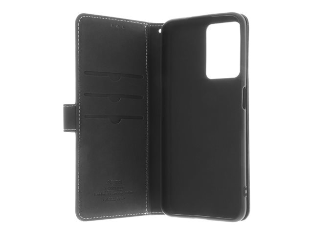 Produktbeskrivelse Insmat - lommebok for mobiltelefon Produkttype Lommebok for mobiltelefon Materiale Ekte skinn, termoplast-polyuretan (TPU), kartong+papir+aluminiumsfolie, bomullssting Farge Svart Designet for OPPO A76 -