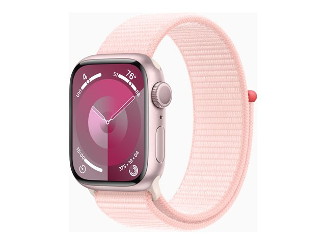 41 mm - rosa aluminium - smartklokke med sportssløyfe - myk dobbeltlagsnylon - lys rosa - 64 GB - Wi-Fi, Bluetooth, UWB - 31.9 g