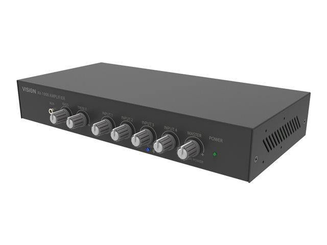 The AV-1900 is a highly capable mixer-amplifier packed with useful features to make it as easy as possible to operate. It is designed for use in demanding applications like meeting spaces, small auditoriums, lecture theaters, school halls, and small churches. It has professional audio features normally only found in much more expensive mixer amps.