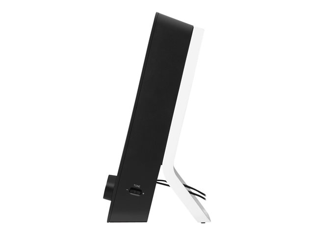 Disse 2.0-høyttalerne leverer 10 watts spisseffekt og fyldig, klar stereolyd, utmerket akustikk og en romfyllende lyd.