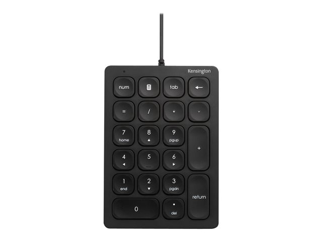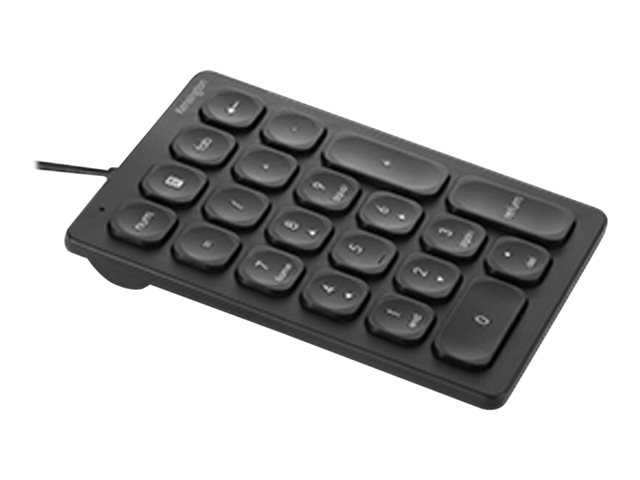 - Wired Numeric Keypad features 21 scissor keys with four shortcut keys, a Num Lock indicator, USB-A connectivity, and anti-slip foot pads