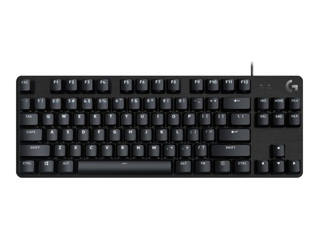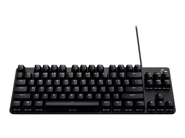 G413 TKL SE har taktile mekaniske brytere, 6-tasters trykkregistrering (rollover), anti-ghosting, PBT tastehetter og en solid konstruksjon av aluminiumlegering - det hele i design uten numerisk tastatur.