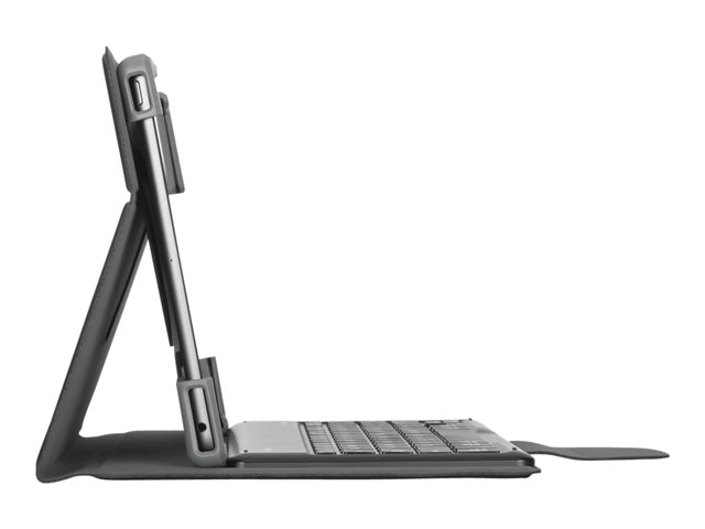 - Flexible cradle with reinforced corners secures and protects tablet