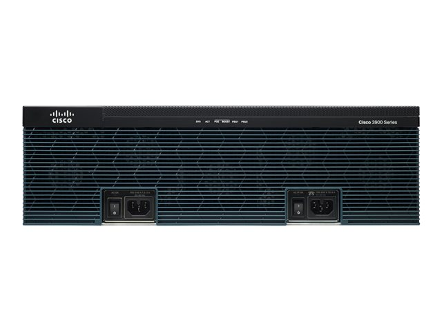 Cisco 3900 Series Integrated Services Routers build on many years of Cisco innovation and product leadership. The platforms are architected to enable the next phase of branch-office evolution, providing rich media collaboration and virtualization to the branch while maximizing operational cost savings. The integrated services routers generation 2 are future-enabled with support for high capacity DSPs (Digital Signal Processors) for future enhanced video capabilities, high powered service modules with improved availability, multi-core CPUs, Gigabit Ethernet switching with enhanced POE, and the improved energy visibility and control capabilities while enhancing overall system performance. Overall, the Cisco 3900 Series offer unparalleled total cost of ownership savings and network agility through the intelligent integration of market leading security, unified communications, wireless, and application services.