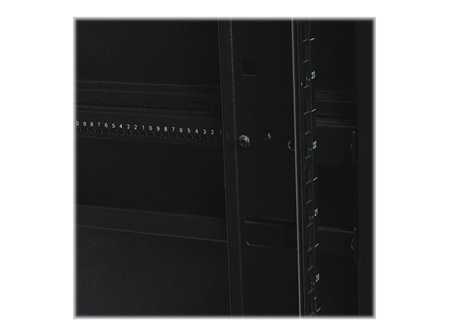 It houses 3000 lb of standard 19-inch rack equipment in 48U. To simplify deployment, the SR48UBDPWD comes with preinstalled casters that enable it to be easily maneuvered into the desired location, where it can be secured by adjusting the preinstalled levelers. Note: the casters are intended for minor position adjustments and are not designed for moving the enclosure over long distances.