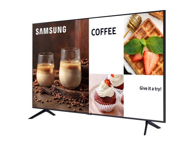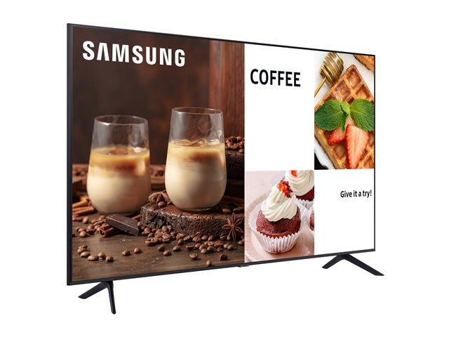 Samsungs Pro TV tilbyr en fantastisk 4K-skjerm, elegant design med enkelt oppsett og endeløse muligheter for tilpasset innhold for bedriften din. Skap varige inntrykk med strålende Crystal UHD-bildekvalitet. Gjør mer med en TV med høy ytelse som verken svikter deg eller kundene dine. Og du kan raskt og enkelt konfigurere TV-en med tilpasset innhold.