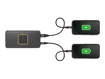 10000 mAh - 3 A - QC 2.0, QC 3.0, Apple Fast Charge, Huawei Fast Charge, PD 2.0, PD 3.0, AFC, SFCP, PE 1.1+, PE 2.0+, USB BC 1.2 - 2 utgangskontakter (USB-C, USB) - på kabel: USB-C - svart