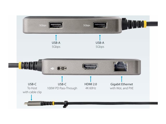 StarTech.com USB-C Multiport Adapter, 4K 60Hz HDMI w/HDR, 2-Port 5Gbps USB 3.0 Hub, 100W Power Delivery Pass-Through, GbE, USB Type C Mini Docking Station, Works with Chromebook certified