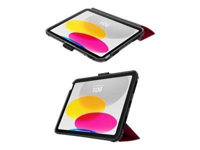 Symmetry Series Folio clear folio case protects your tablet against drops, and its clear back makes it easy to identify engravings and asset tags. The microfiber folio lining guards the screen an elastic band holds it closed. The folio quickly converts into two positions for typing and viewing. Plus, the case stays put on slick surfaces thanks to no-skid rubber feet.