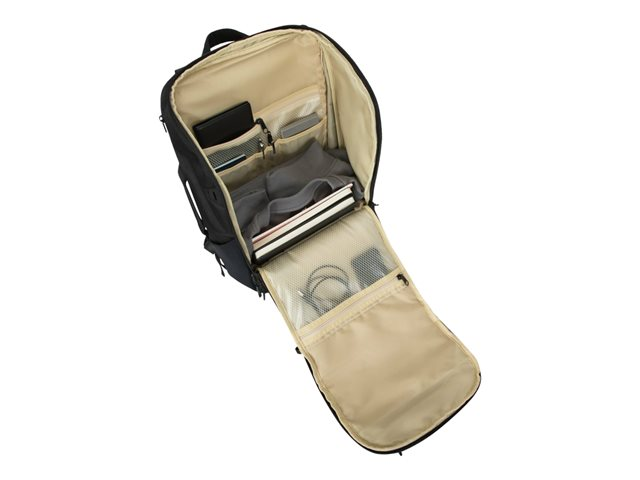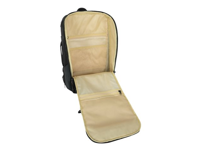 Designed to make the most of your day, this backpack offers several pockets to store your accessories and other essentials, including top, side, and hidden lumbar pockets for quick access. The pack also offers a top- and front-loading feature, an external footwear compartment, front and side grab handles, a trolley strap so you can secure it to your rolling luggage, and a stretchable loop for your jacket.